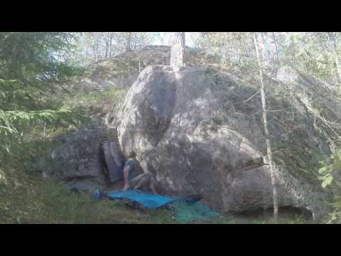 Noe av det som fascinerer med buldringen er at man kan komme over linjer eller steiner som har ligget brakk i flere år. Det er ikke til å legge skjul på at de fleste drar til steder de kjenner fra før eller som de har fått anbefalt av andre. Ikke noe galt i det, men skogen rommer mange skatter som burde blitt børstet frem eller hatt mer besøk. Jeg kan ikke huske sist jeg var i skogen uten å ha med kost og børster. På nesten alle steder jeg kommer er det iallefall behov for noen runder med piasavakosten eller lett pussing av begynnende mose. Ikke bare blir steinen bedre å buldre på, men kosting og børsting er også en fin form for oppvarming.
